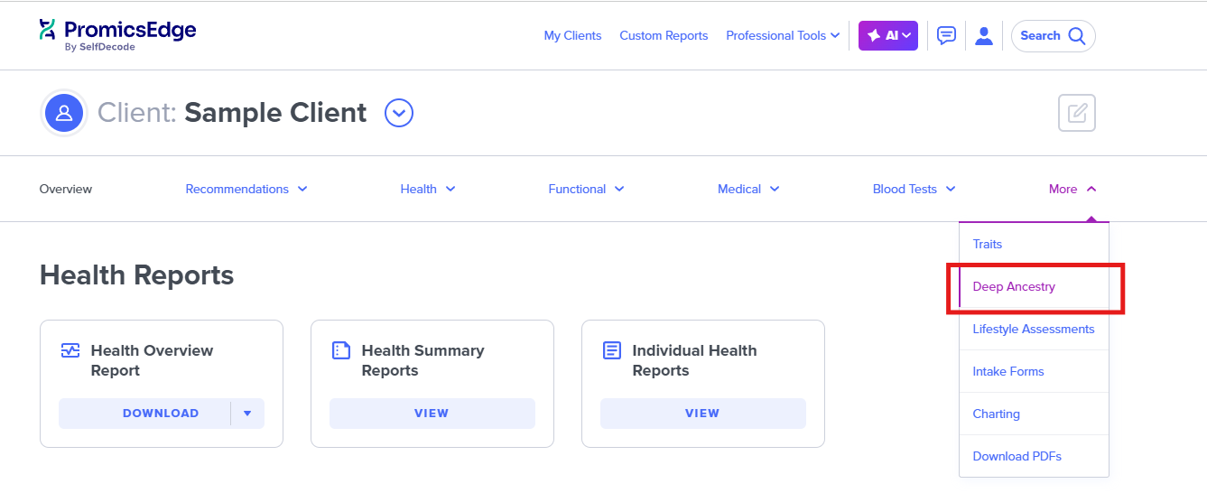 Another option is to unlock ancestry once you've added a client. Just open their profile overview and navigate to "More > Deep Ancestry".