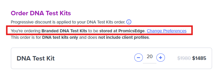 Enjoy the savings of up to 25% when you order DNA kits in bulk. Branded kits start at $99 and unbranded kits start at $119.